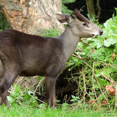 Dit kuifhert ziet eruit als de vampier onder de herten. Scary!