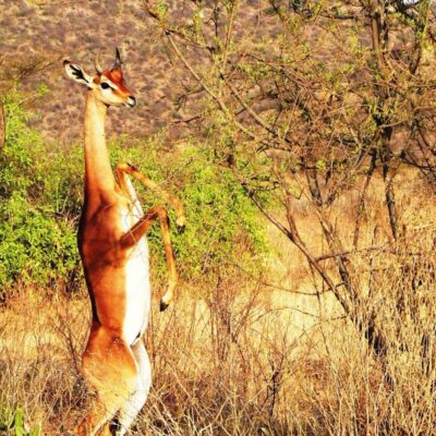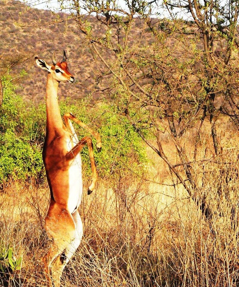 Dit is een gerenoek, ook wel een giraffe gazelle genoemd. En je snapt vast waarom.