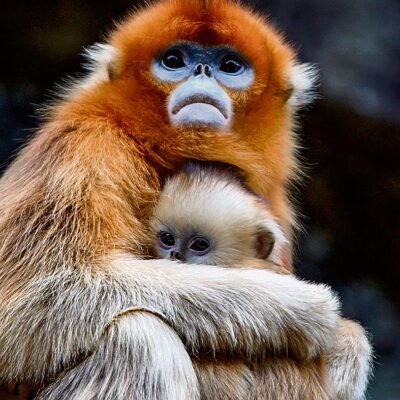 Dit schattige aapje is een stompneusaap. Wat een bijzonder gezicht!